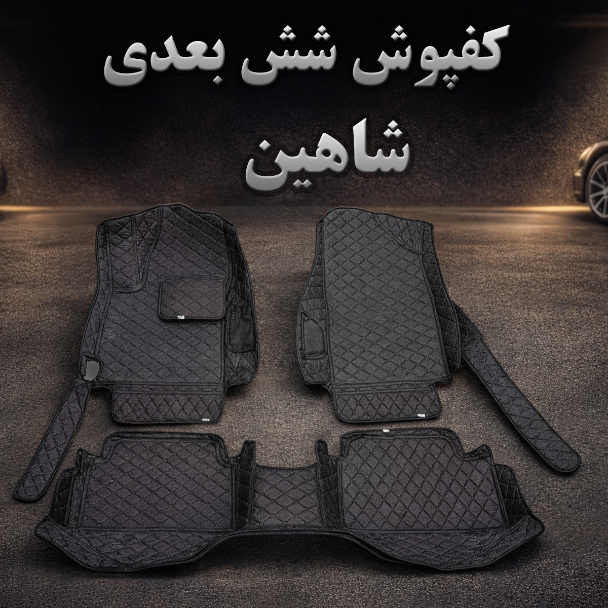 کفپوش 6 بعدی چرمی خودرو شاهین – چرم مصنوعی گلدوزی‌شده، ضد آب و پوشش 100٪ کف