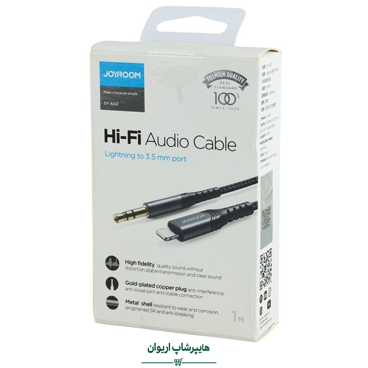 خرید کابل تبدیل لایتنینگ به AUX جوی‌روم مدل SY-A02 طول 1 متر از هایپر شاپ اریوان. دارای چیپ DAC داخلی، انتقال صدای شفاف و بدنه مقاوم با روکش نایلونی.